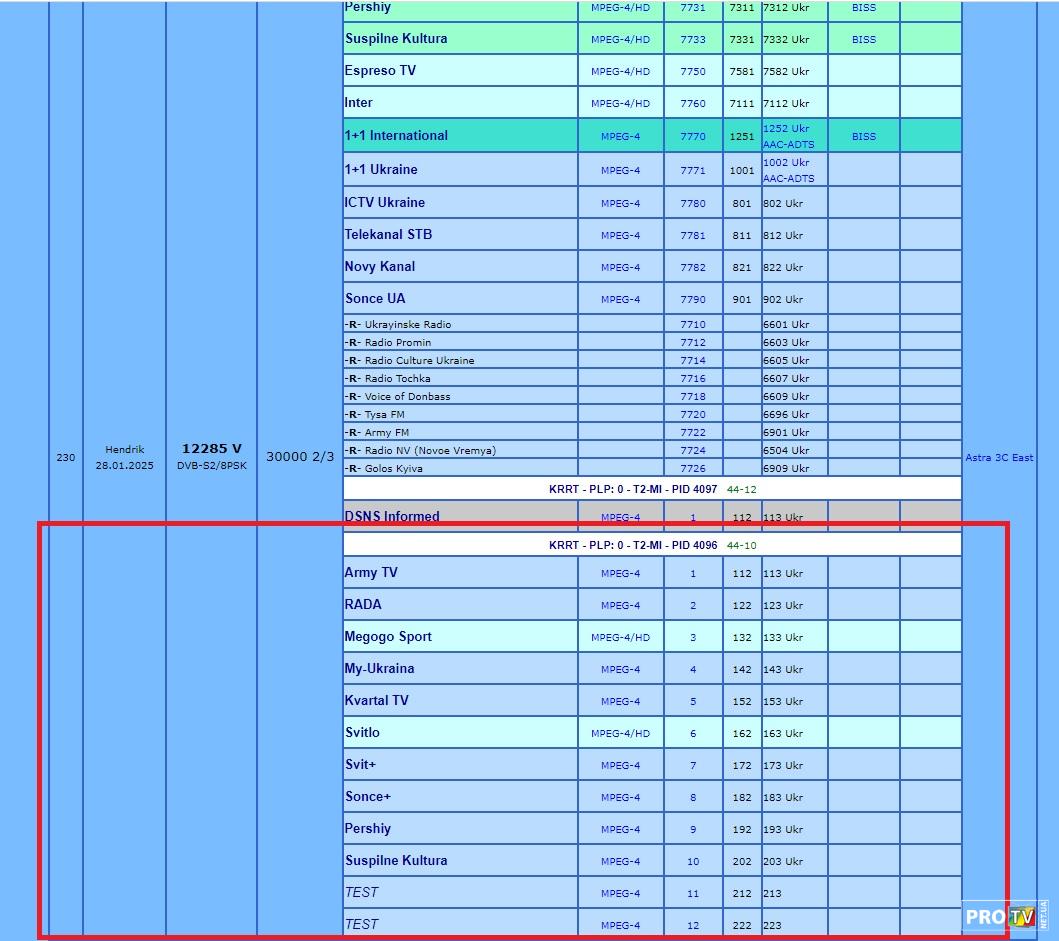 На спутнике Astra 3C @ 23.5° E KРРТ МХ-7 используется как резерв.